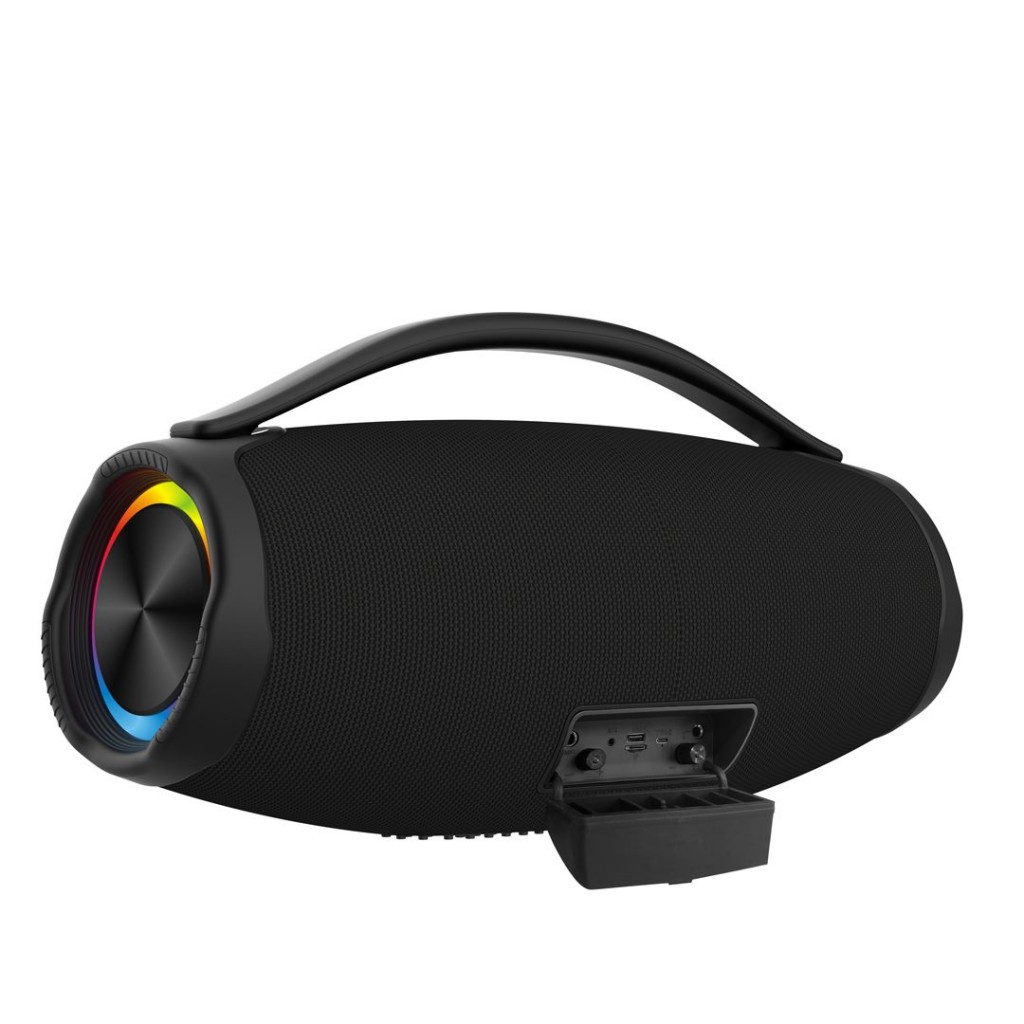 - طراحی قابل حمل و سبک: با طراحی جمعوجور و وزن سبک، این اسپیکر به راحتی قابل حمل است. به لطف باتری شارژی قدرتمند، شما میتوانید آن را در هر کجا که میخواهید، همراه داشته باشید.