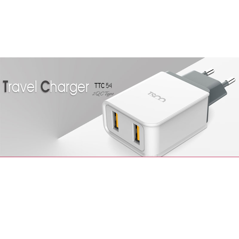 شارژر دیواری TTC 54 یکی از محصولات کوالکوم 3 نسل جدید شارژرهای تسکو است که موبایل و تبلت شما را که از تکنولوژی QUALCOMM 3.0 فست شارژ پشتیبانی میکند تا 75 درصد سریعتر از شارژرهای معمولی شارژ میکند.