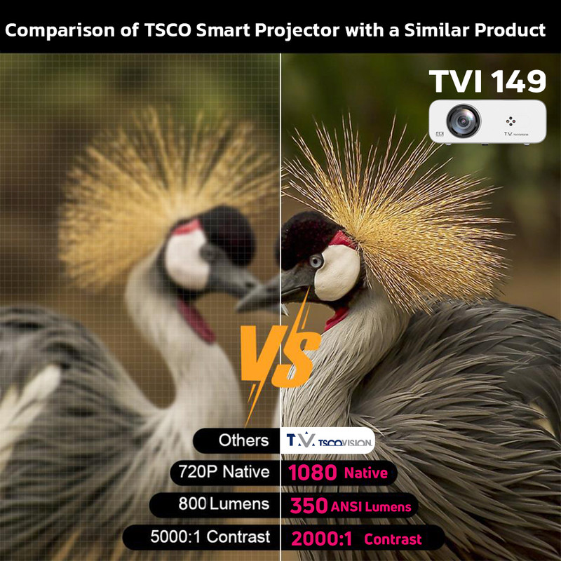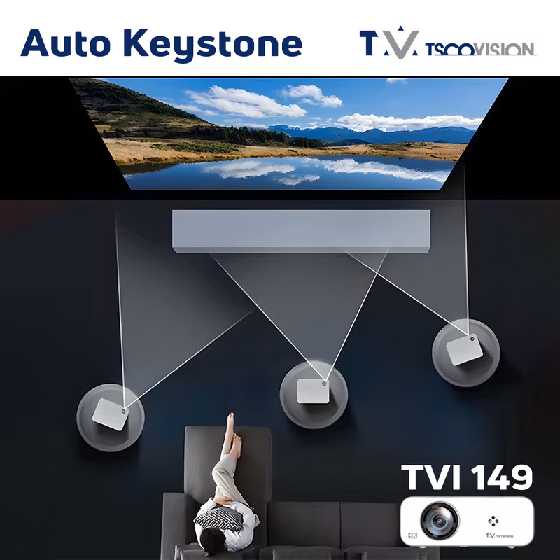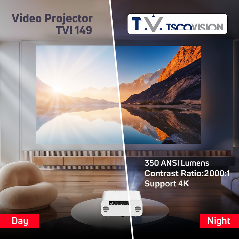 ویدئو پروژکتور هوشمند تسکوویژن مدل TVI 149 از فناوری LCD پیشرفته بهره میبرد و با وضوح 1920×1080 پیکسل (Full HD)، تصاویری شفاف و پرجزئیات ارائه میدهد. علاوه بر این، این دستگاه از رزولوشن 4K نیز پشتیبانی میکند و امکان نمایش محتوا با وضوح فوقالعاده بالا و کیفیت تصویر خیرهکننده را فراهم میسازد.ت این وضوح بالا، به همراه کنتراست 2000:1، نمایش تصاویر واقعیتر و واضحتر را تضمین میکند. این دستگاه با لنز شیشهای چندلایه (Coated Glass Lens)، کیفیت تصویری بالاتر و کاهش اعوجاج نور را ارائه داده و باعث افزایش دقت رنگ و روشنایی تصویر میشود. فناوری فوکوس خودکار (Auto Focus) در کنار کیستون خودکار (Auto Keystone)، یکی از ویژگیهای کلیدی این مدل محسوب میشود که باعث میشود تنظیم تصویر بدون نیاز به مداخله دستی و با دقت بالا انجام شود. کیستون خودکار این امکان را فراهم میکند که حتی اگر پروژکتور در زاویهای غیرمستقیم نسبت به پرده یا دیوار قرار گیرد، تنظیمات اصلاحی انجام شده و تصویری مستطیلی و بدون اعوجاج نمایش داده شود. نسبت پرتاب 1.39:1، امکان ایجاد تصویری با اندازه 40 تا 200 اینچ را فراهم میکند که این ویژگی در اتاقهای مختلف، بدون نیاز به فضای زیاد، انعطافپذیری بالایی را برای کاربران به همراه دارد. همچنین، این ویدئو پروژکتور هوشمند با نسبت تصویر 16:9 و 4:3، قابلیت نمایش انواع محتواهای ویدئویی و ارائههای تصویری را بدون تغییر نسبت ابعاد اصلی آنها فراهم کرده است.