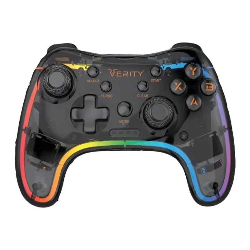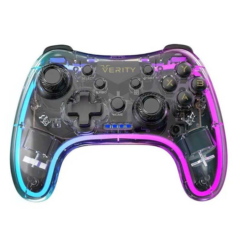 دسته بازی وریتی مدل V-J4310W از جنس پلاستیک باکیفیت و مقاوم در برابر آسیب های احتمالی همچون ضربه و فشار ساخته شده است. این دسته بازی مجهز به نورپردازی RGB جهت ایجاد جلوه بصری زیبا در محیط کم نور بوده و عمر تقریبی آن 500,000 ساعت می باشد. اتصال این گیم پد به صورت بی سیم بوده و از طریق دانگل USB با فرکانس 2.4 گیگاهرتز به کامپیوتر متصل می شود.