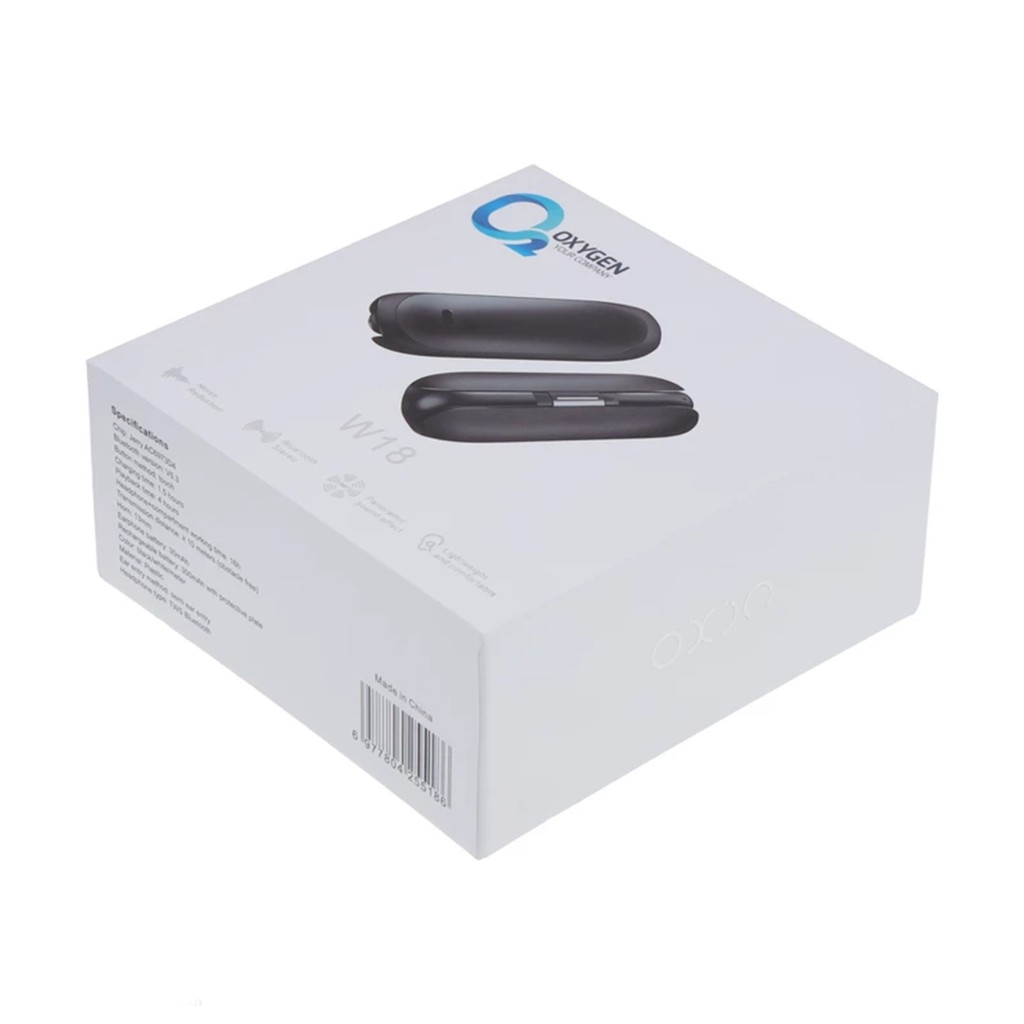 در درجه اول طراحی و ظاهر هدفون بلوتوثی اکسیژن مدل W18 توجه را جلب میکند. هم کیس و هندزفری رنگ مشکی مات دارد که جلوه جذابی را ایجاد کرده است. کیس هندزفری بسیار جمع و جور است و به همین دلیل هم به راحتی میتوانید آن را همراه خود حمل کنید. روی این کیس برند اکسیژن هک شده و پورت شارژ تایپ سی هم تعبیه شده است، به علاوه کابل شارژ هم برای شارژ کیس قرار داده شده است. هندزفریها طراحی ارگونومیکی دارند و به راحتی در گوش فیکس میشوند. این سریها دارای سری سیلیکونی نیستند و در عین حال زاویهدار طراحی شدهاند.