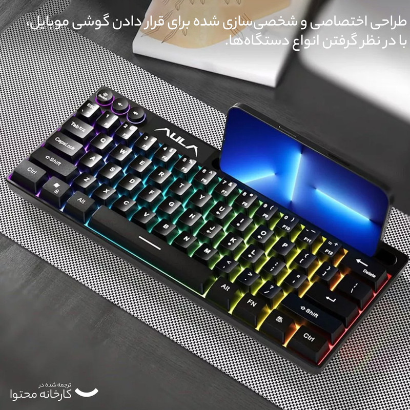 کیبورد گیمینگ آئولا Aula F3061 کیبورد گیمینگ Aula مدل F3061 یک کیبورد گیمینگ درجه یک است که به طور خاص برای گیمرها طراحی شده است. این یک کیبورد گیمینگ بسیار پیشرفته و غنی است که دارای طیف وسیعی از ویژگی ها و عملکردها است که آن را به یک انتخاب عالی برای گیمرهایی تبدیل می کند که می خواهند تجربه بازی خود را به سطح بالاتری ببرند. طراحی و کیفیت ساخت کیبورد گیمینگ Aula مدل F3061 کیبورد گیمینگ F3061 Aula دارای طراحی شیک و شیک است که مطمئناً برای گیمرها جذاب خواهد بود. کیبورد گیمینگ از مواد باکیفیت ساخته شده است و کیفیت ساخت محکمی دارد که تضمین می کند که می تواند در استفاده های سنگین بدون هیچ مشکلی مقاومت کند. این کیبورد همچنین دارای یک تکیه گاه مچ قابل جدا شدن است که پشتیبانی و راحتی بیشتری را در طول جلسات طولانی بازی فراهم می کند.