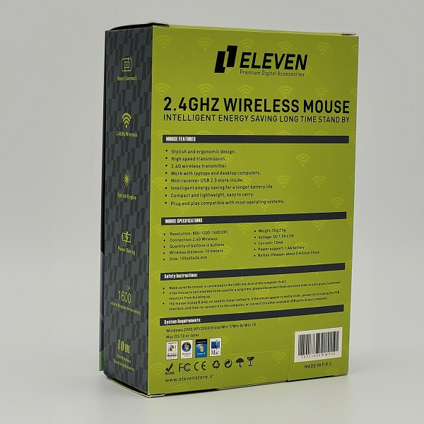 این موس بی سیم دارای 6 دکمه سایلنت است که عمری تا 3 میلیون کلیک دارند. جنس پدهای زیر موس از جنس PTFE(تفلون) ساخته شده که امکان حرکت نرم و روان آن را بر روی هر سطحی ممکن میکند. (مادهای که به عنوان پوشش در تابههای نچسب هم استفاده میشود). این ماوس با ظاهری زیبا و اسکرول طرح استیل فقط نیاز به یک باتری قلمی دارد که با توجه AUTO ON/OFF بودن تقریبا 12 ماه میتواند با یک باتری کار کند( با توجه به کیفیت باتری).