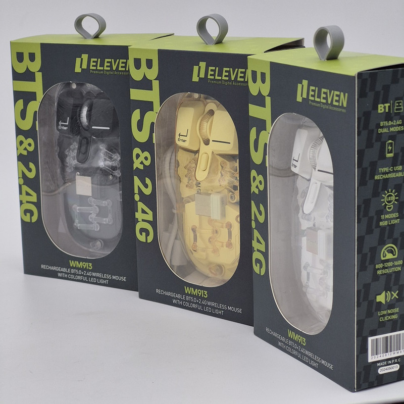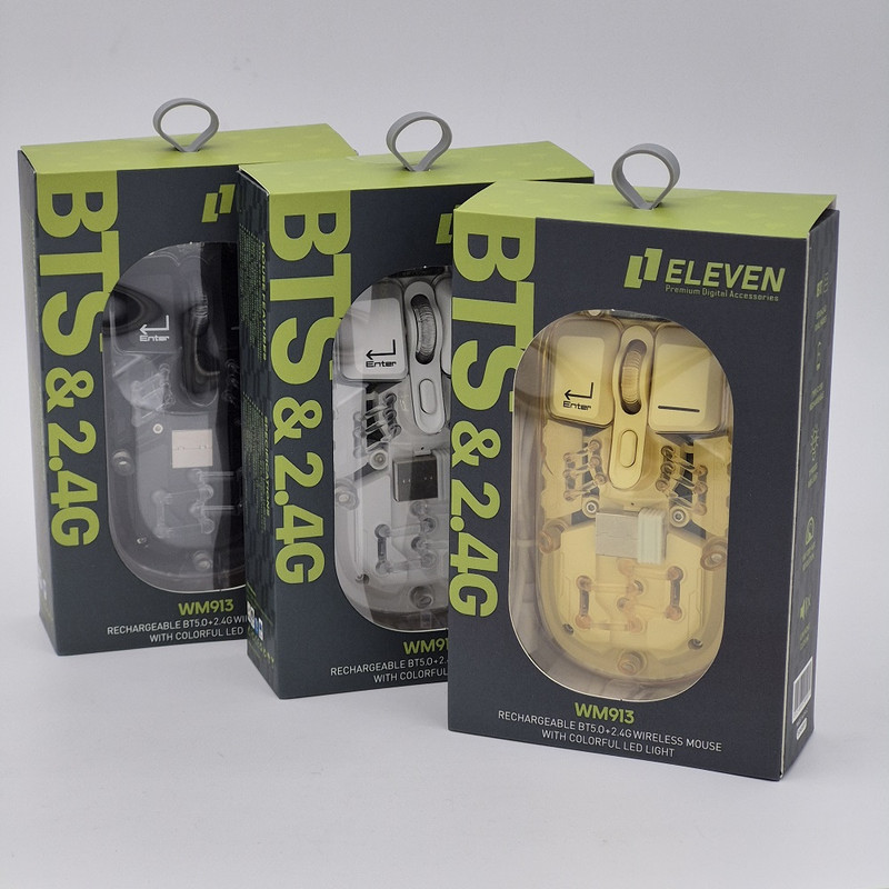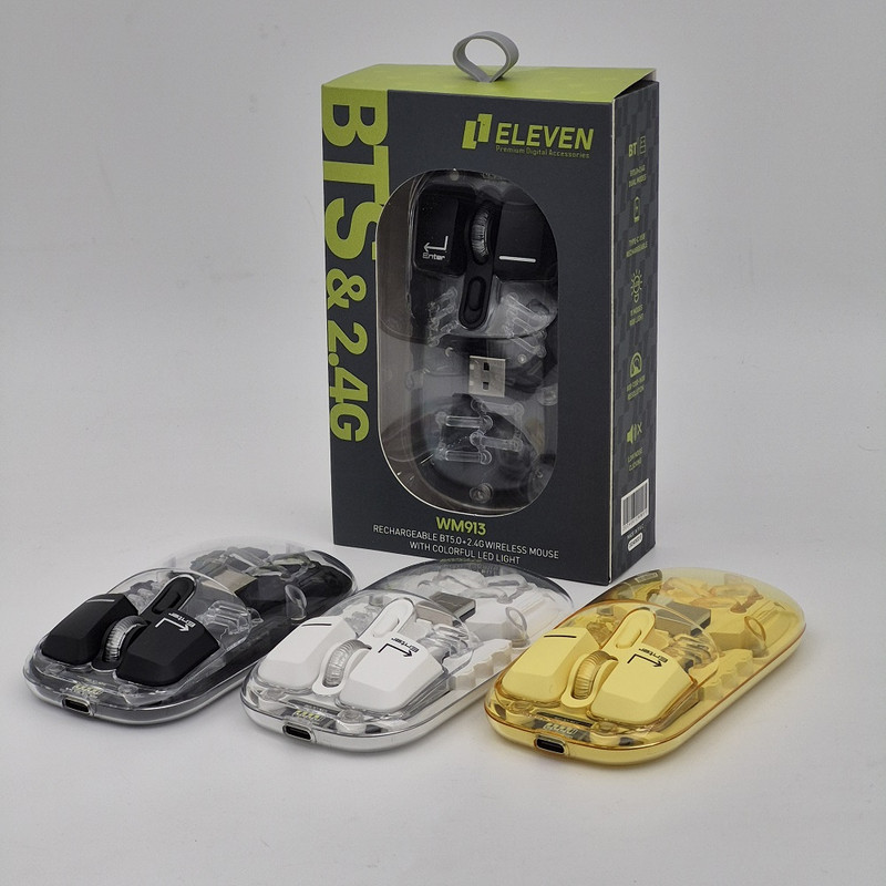ماوس WM913 برند ELEVEN یکی از جدید ترین محصولات سال 2024 این برند هستش. این ماوس جدید فانتزی مجموعه ای از آپشن های مورد نیاز را دارد و یک ماوس همه چیز تمام هستش. WM913 ماوس شارژی هستش که شما را از خرید باتری بی نیاز میکند داخل خودش یک باتری 400 میلی آمپری هستش که در صورت استفاده مداوم و از فاصله نزدیک تا یک هفته میتوانید استفاده کنید بعد از اتمام شارژ آن جای نگرانی نیستش چون این ماوس با درگاه TYPE-C شارژ میشود و شما به راحتی میتوانید آن را شارژ کنید.این ماوس قابلیت نمایش میزان شارژ را دارد تا دیگر در حین کار شارژ ماوس تمام نشود.