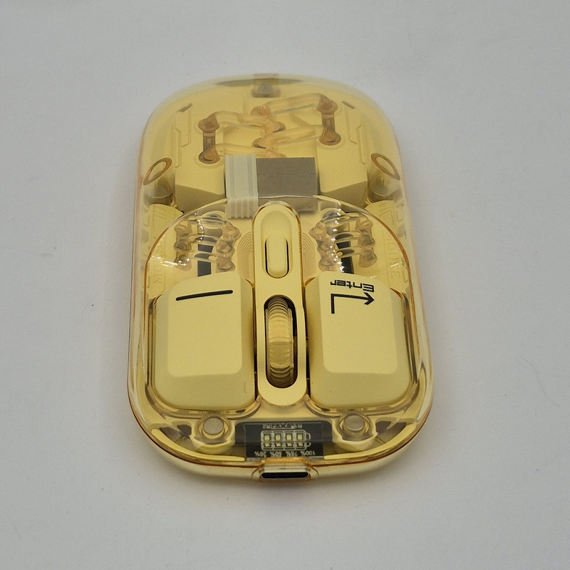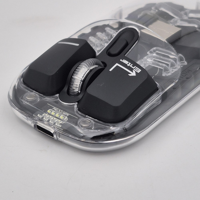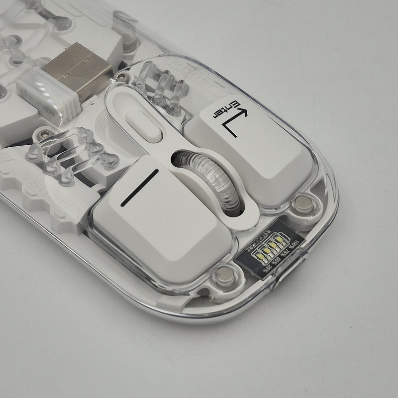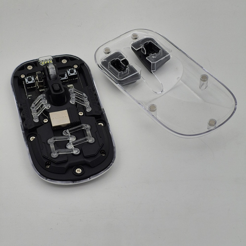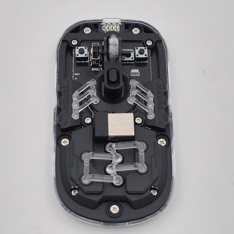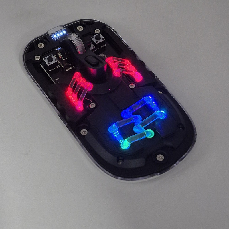 از دیگر کارایی های فوق الهاده آن قابلیت اتصال همزمان یک دانگل و یک بلوتوث به صورت همزمان هستش که با کلیدی که در زیر ماوس هستش شما میتوانید انتخاب کنید تا با چه استانداردی وصل شوید. شما در آن واحد میتوانید به یک تلویزیون و یک کیس یا غیره وصل شوید.درب این ماوس به صورت مگنتی هستش که باعث میشود عمر خیلی زیادی داشته باشد و دانگل داخلش قرار میگیرد که دیگر گم نشود. نورپردازی RGB این با دکمه ایی که زیر آن قرار دارد قابل عوض کردن هستش که ده مود رنگبندی جذاب دارد