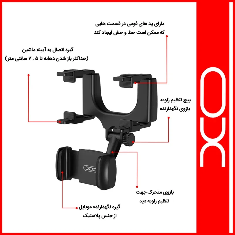- سازگاری بالا: گیره اتصال به آینه از ۵ تا ۷.۵ سانتیمتر باز میشود که تقریباً با تمام خودروهای داخلی و خارجی سازگار است.