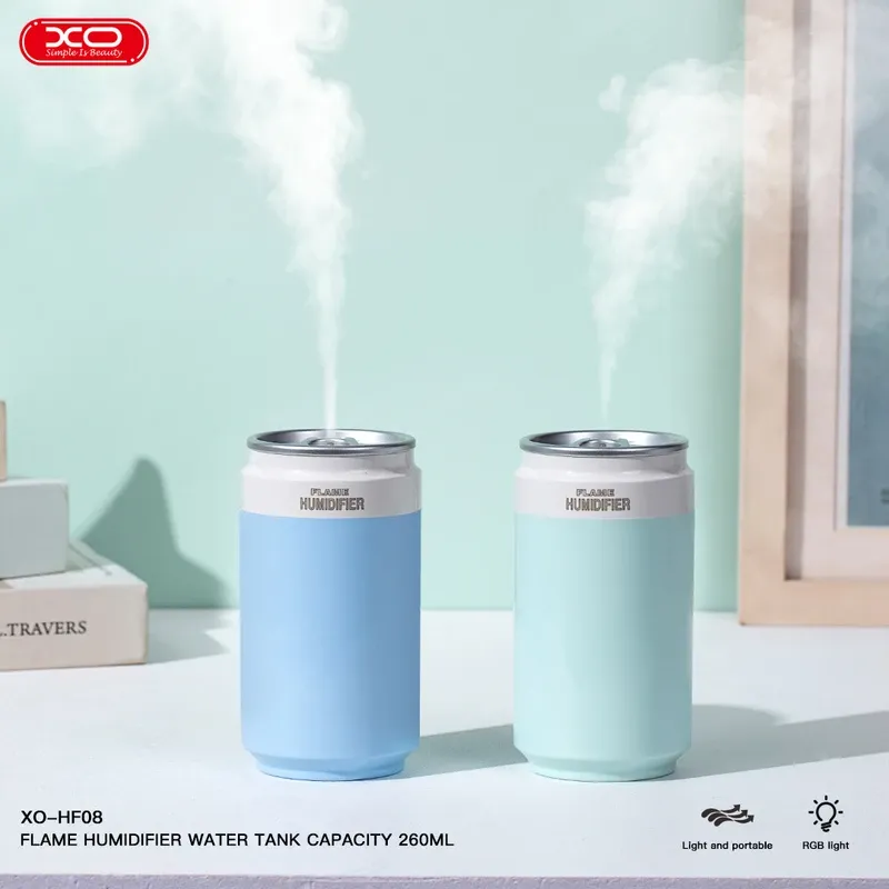 دستگاه بخور سرد و رطوبتساز XO مدل HF08 (طرح قوطی نوشابه، نورپردازی RGB و مناسب خودرو)